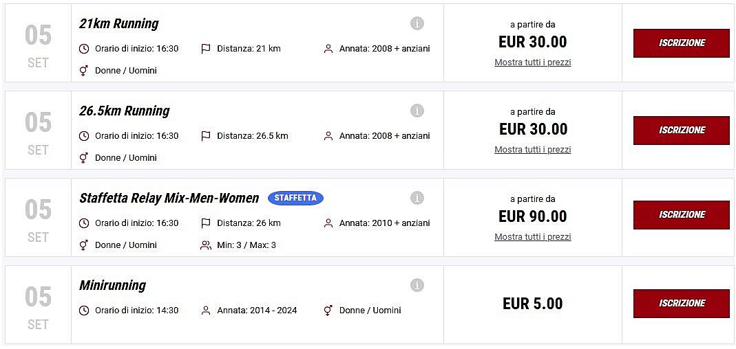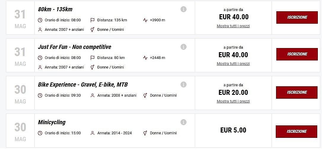 Oltre agli eventi principali potrai iscriverti a tutti gli eventi in programma durante il weekend "Cycling" e "Running".